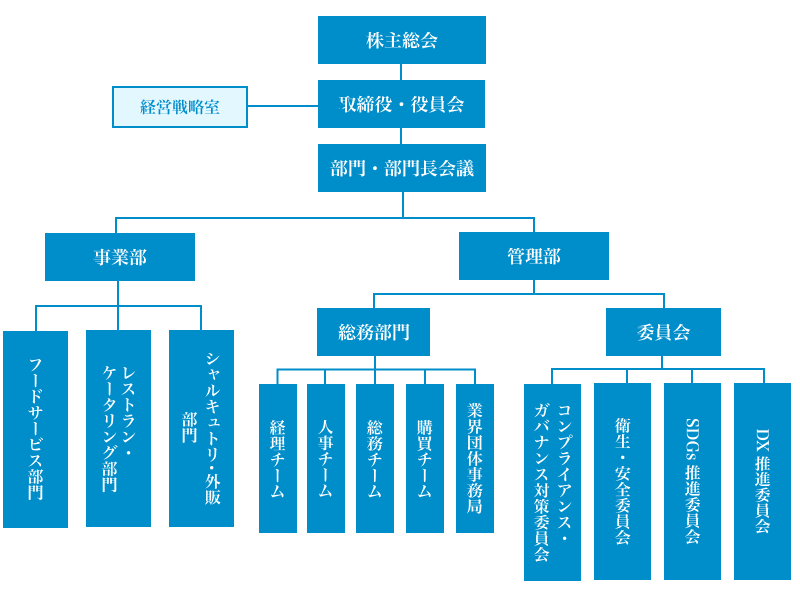 社内における法令遵守、ハラスメント防止のための社内ルール・倫理規範などの策定と共に様々なリスク管理に対応する仕組みを強化し、社内教育を図る内部通報制度(ホットライン)の設置と運用を行う