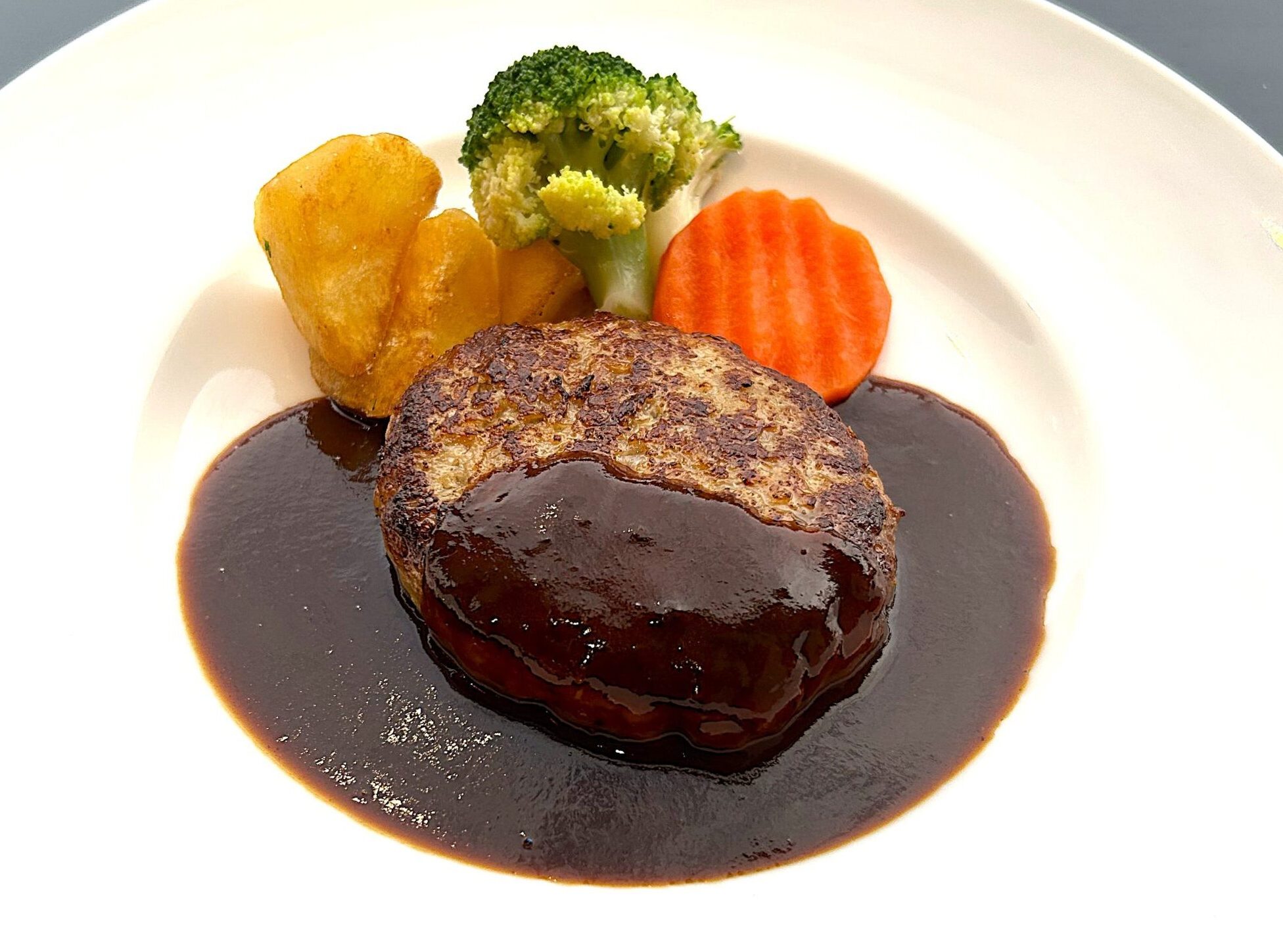 今月のおすすめは、挽き立てミンチ肉のこだわりのハンバーグ。